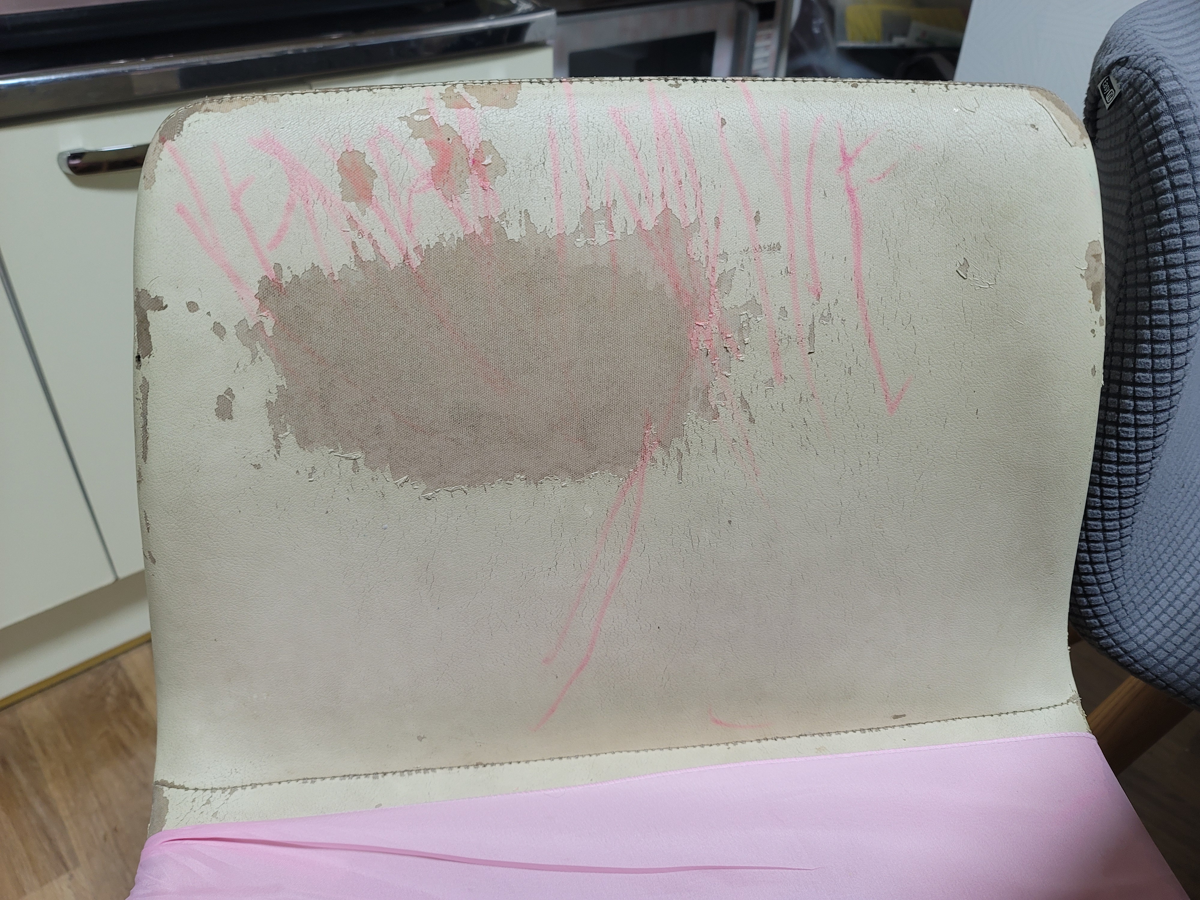 근데 다른 의자랑 다르게 얘는 가죽이 벗겨지고