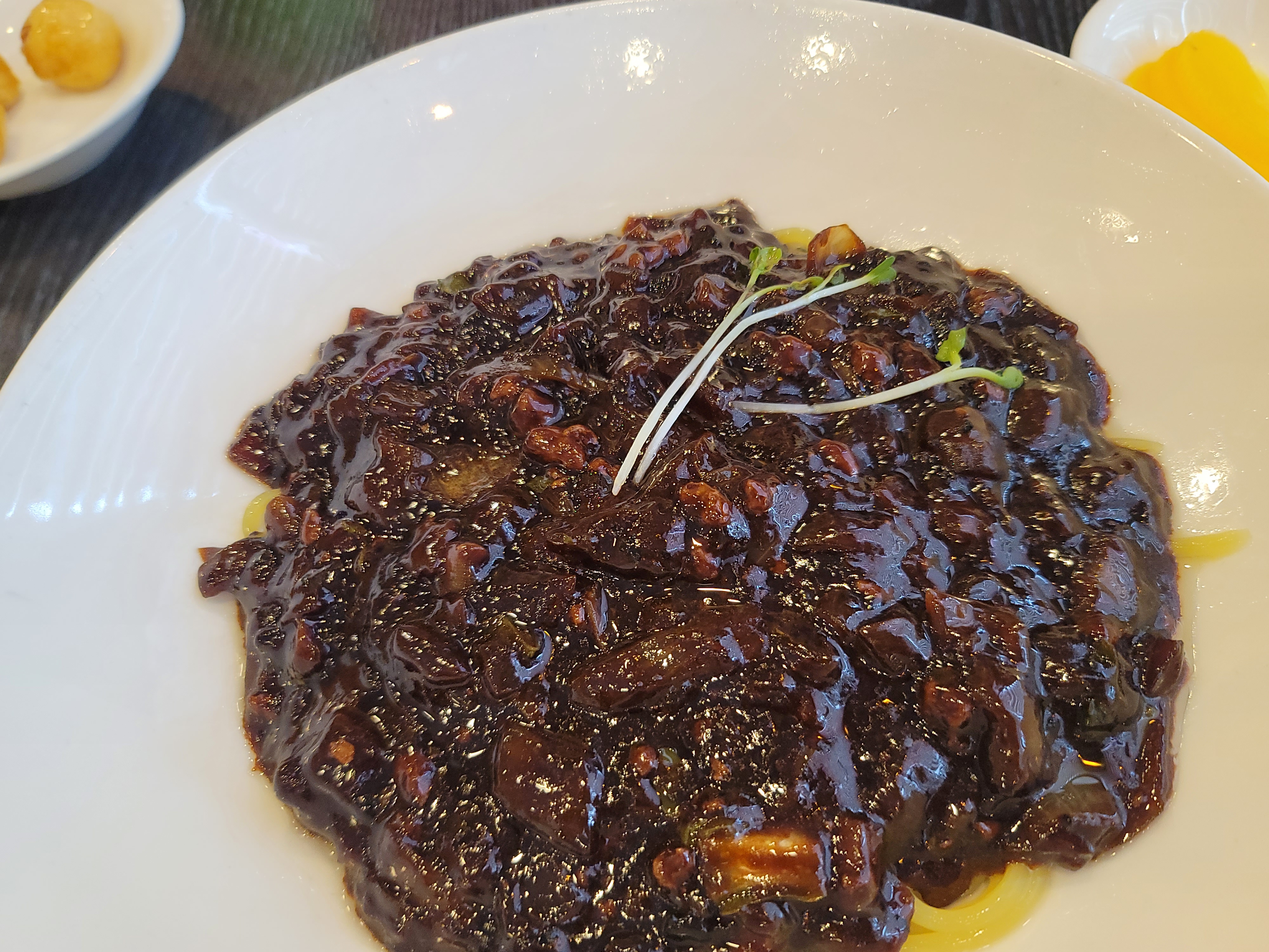 짜장도 소스가 충분하여 정말 맛있었습니다. 아이도 어른도 모두 잘 먹었네요. 반찬에는 깍두기랑 동그란 경단 튀긴것을 주시는데 그것도 맛있었어요.