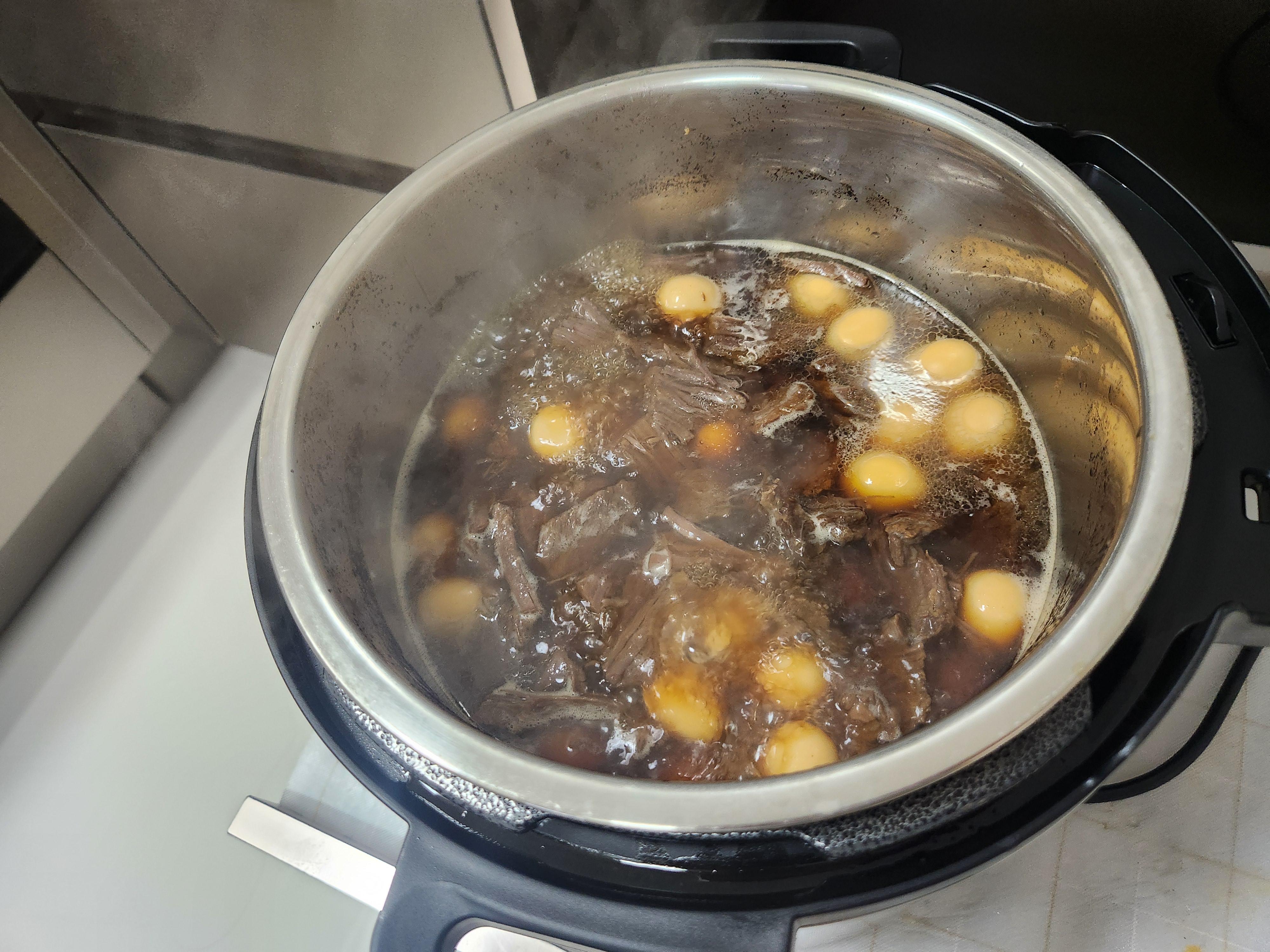 장조림(설탕넣고 핏물30분빼기 >> 만능조리 고기 버섯 무 간장2:설탕1 맛술 넣고 20분 ((간장물 많이 넣지말고 스텐용기의 절반정도만 넣기)) / 20분 후에 고기건지고 간 더하고 >>> 물엿 + 메추리알 넣고 볶음 모드로 20분 하는동안 고기 찢어서 같이 졸이기)