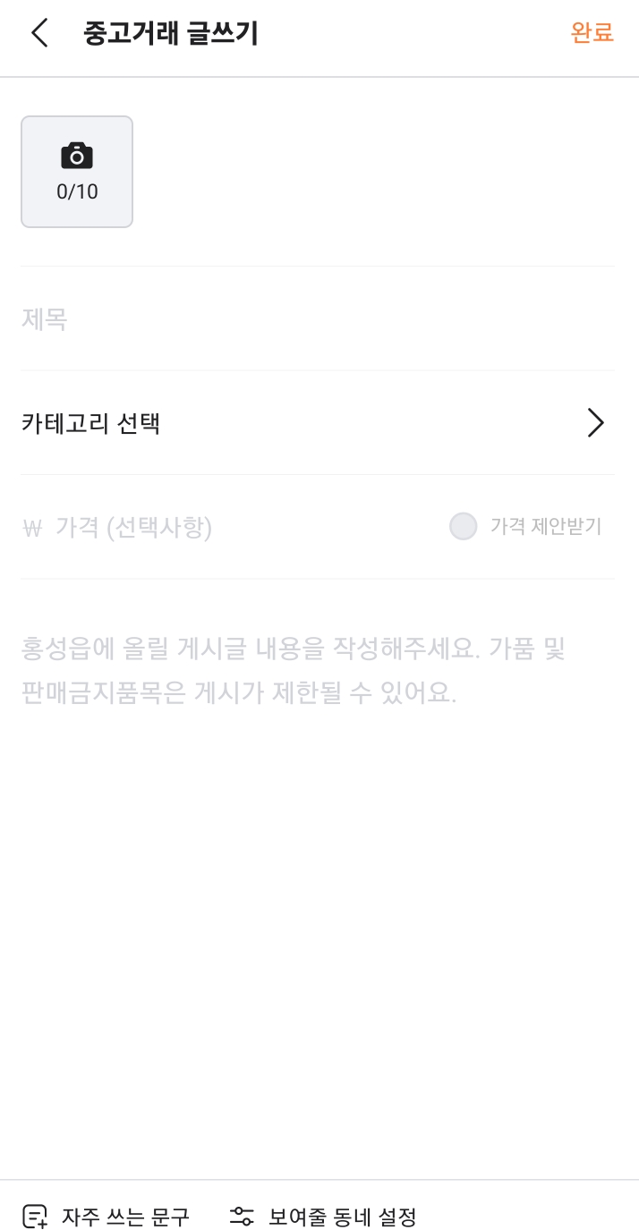 그걸 눌러서 중고거래 글을 쓰시면 됩니다.