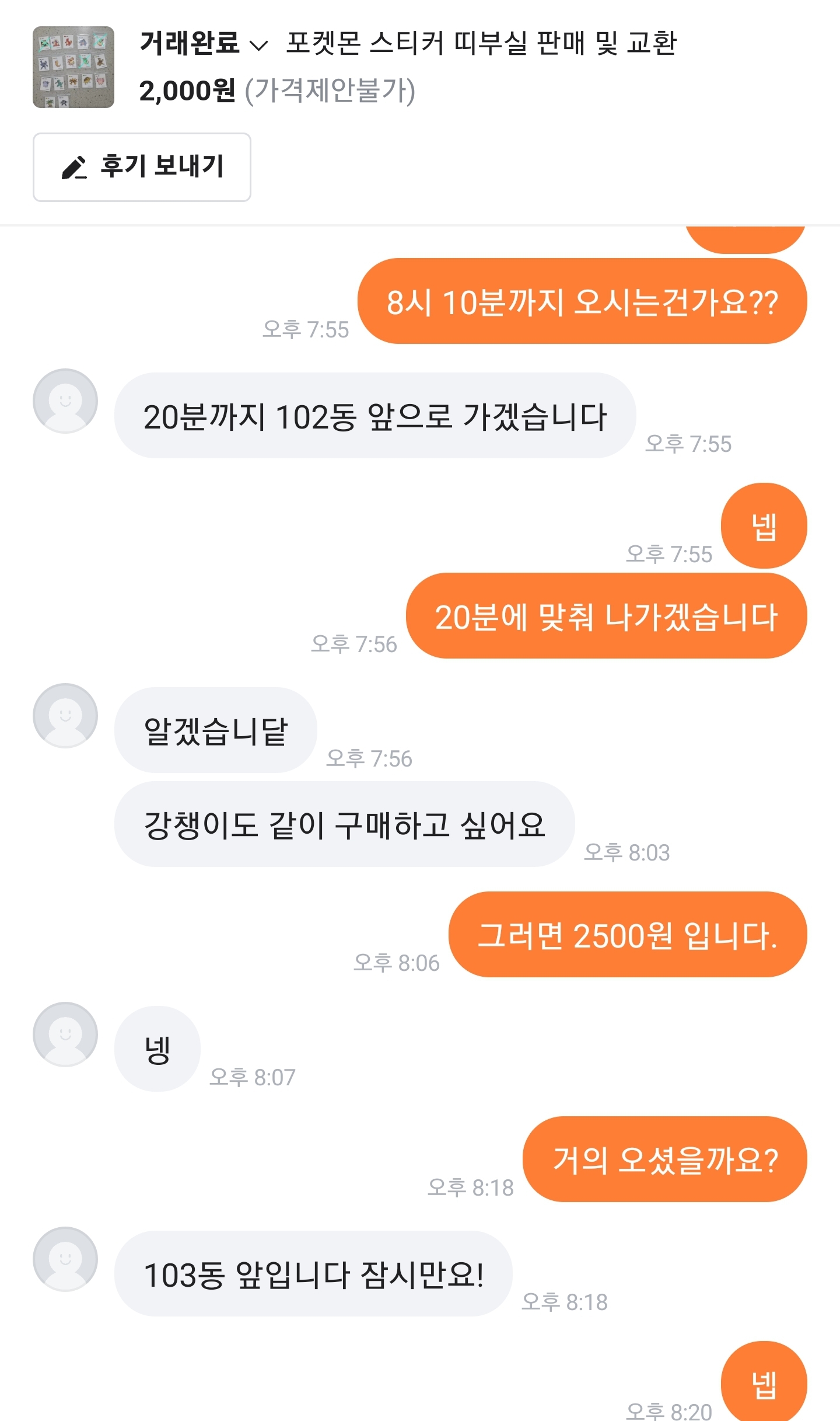 이때 주의하실점은 어린 친구들도 거래를 하는데, 약속시간을 잘 안지키거나