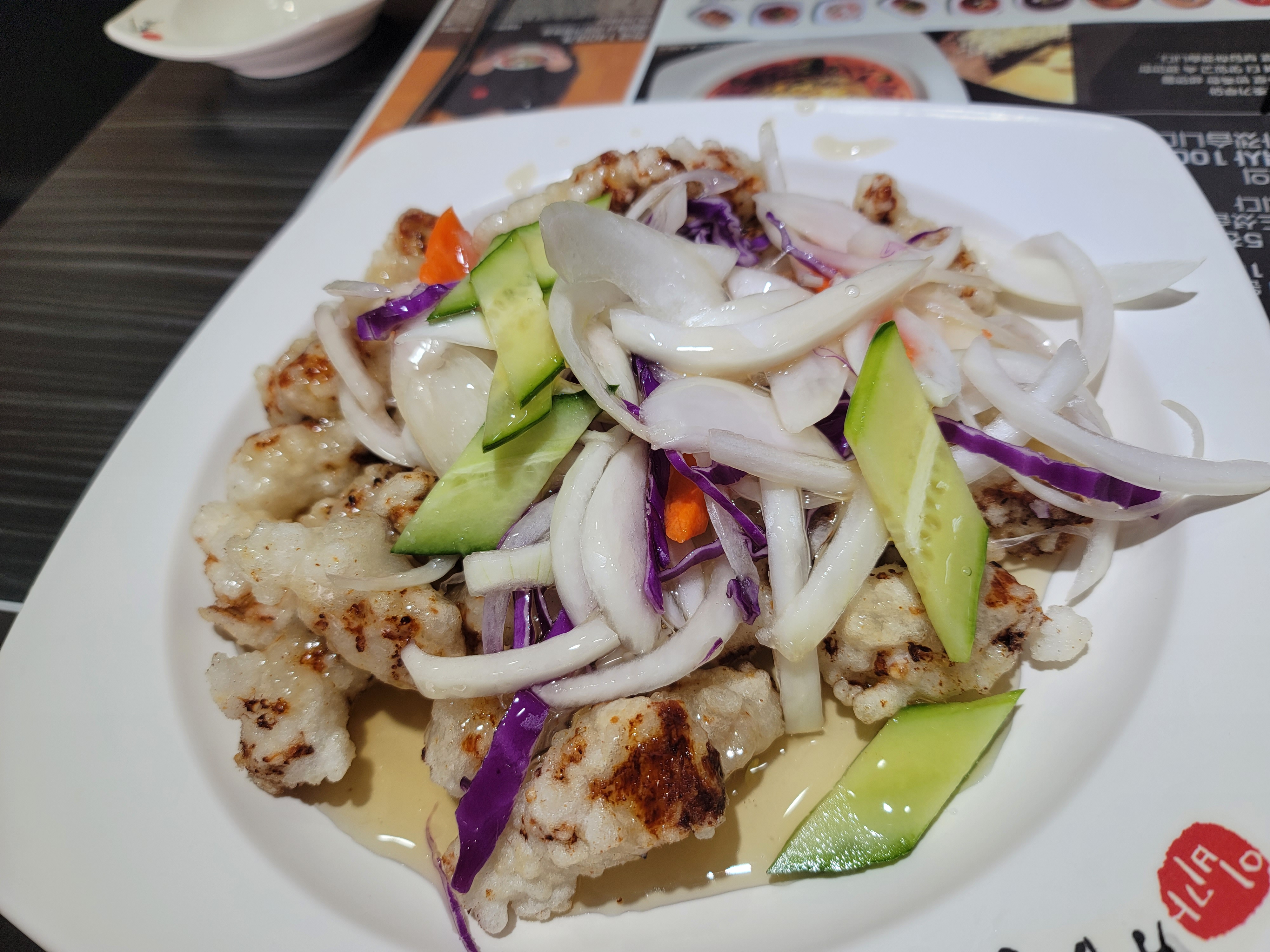 찹쌀탕수육은 쫄깃하면서 바삭한데, 산뜻한 소스와 잘 어울립니다.