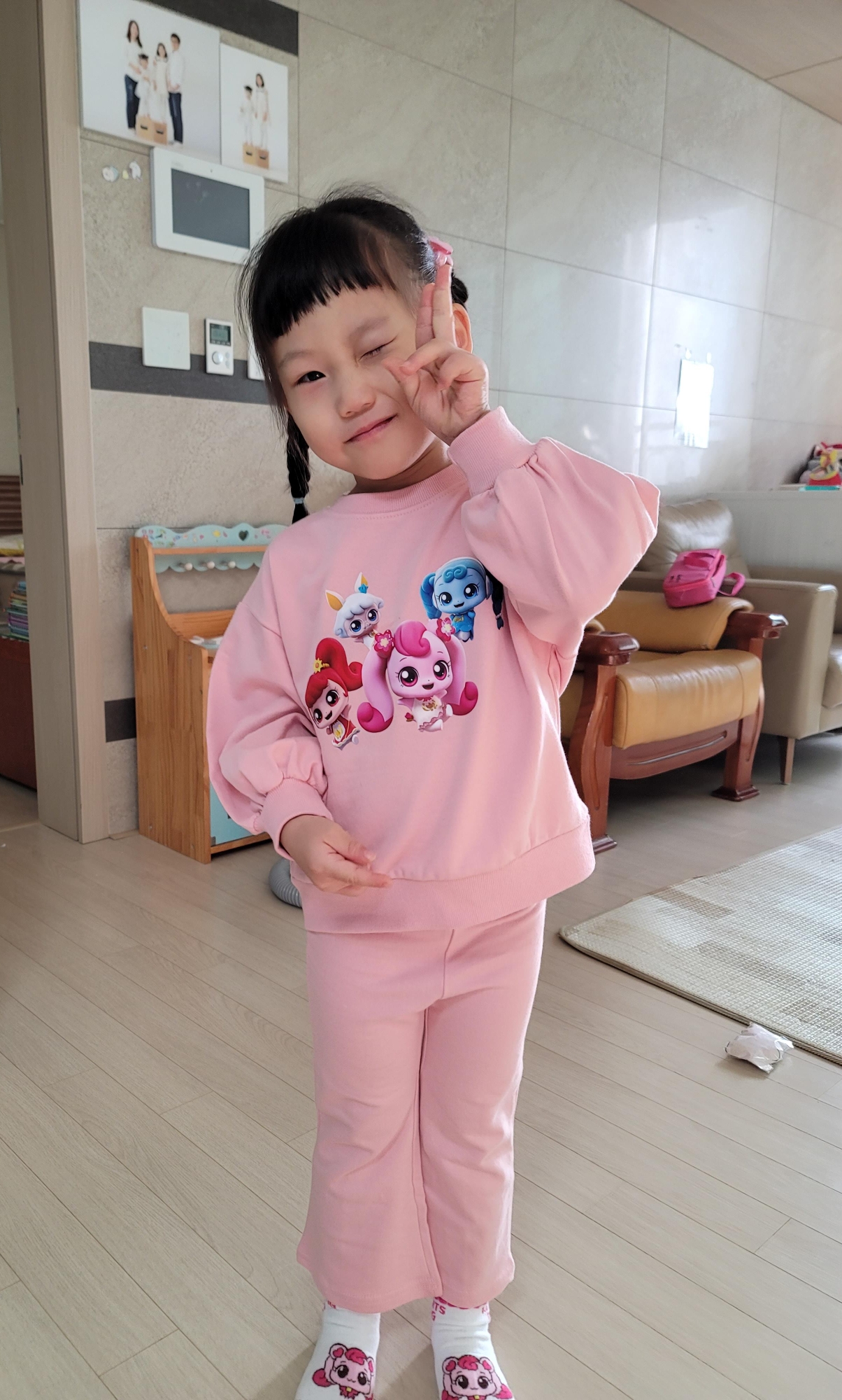 귀여운 티니핑 옷 때문에 한껏 신나서 유치원에 갔답니다~~