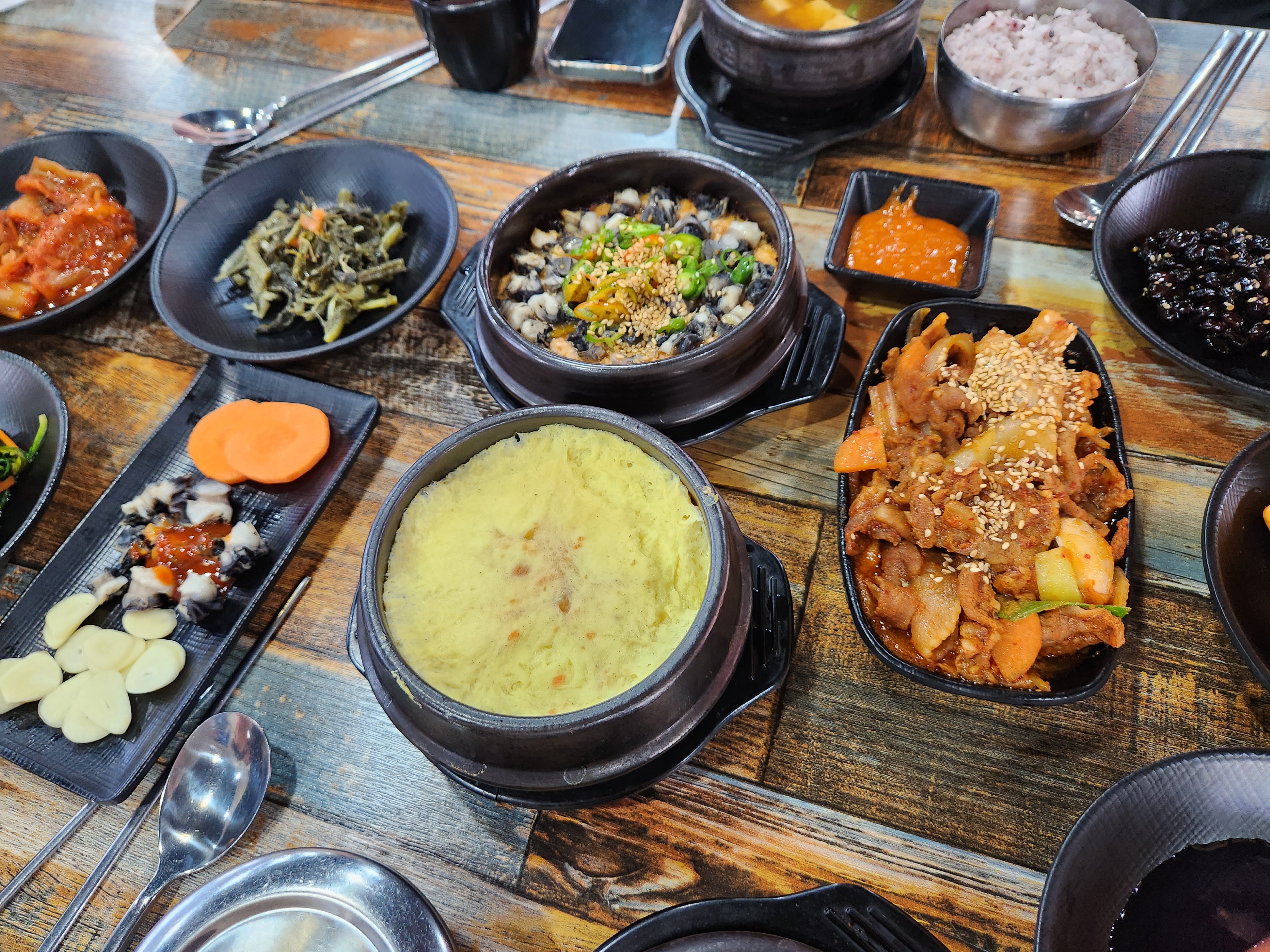 우렁쌈장 안에는 콩이 갈아져서 있었는데요. 꼭꼭 씹으니 고소~하고 맛이 좋았습니다. 부족한 짠맛은 옆에 쌈장으로 채우시면 됩니다. 제육볶음도 맛있어서 쌈에 싸먹기에 좋았습니다. 쌈은 무한리필이라서 쌈 냉장고에서 원하는 만큼 가져다가 드시면 됩니다. 밑반찬이 다 제가 좋아하는 것들이라서 정말 한끼 제대로 먹고 온 느낌이 났습니다.