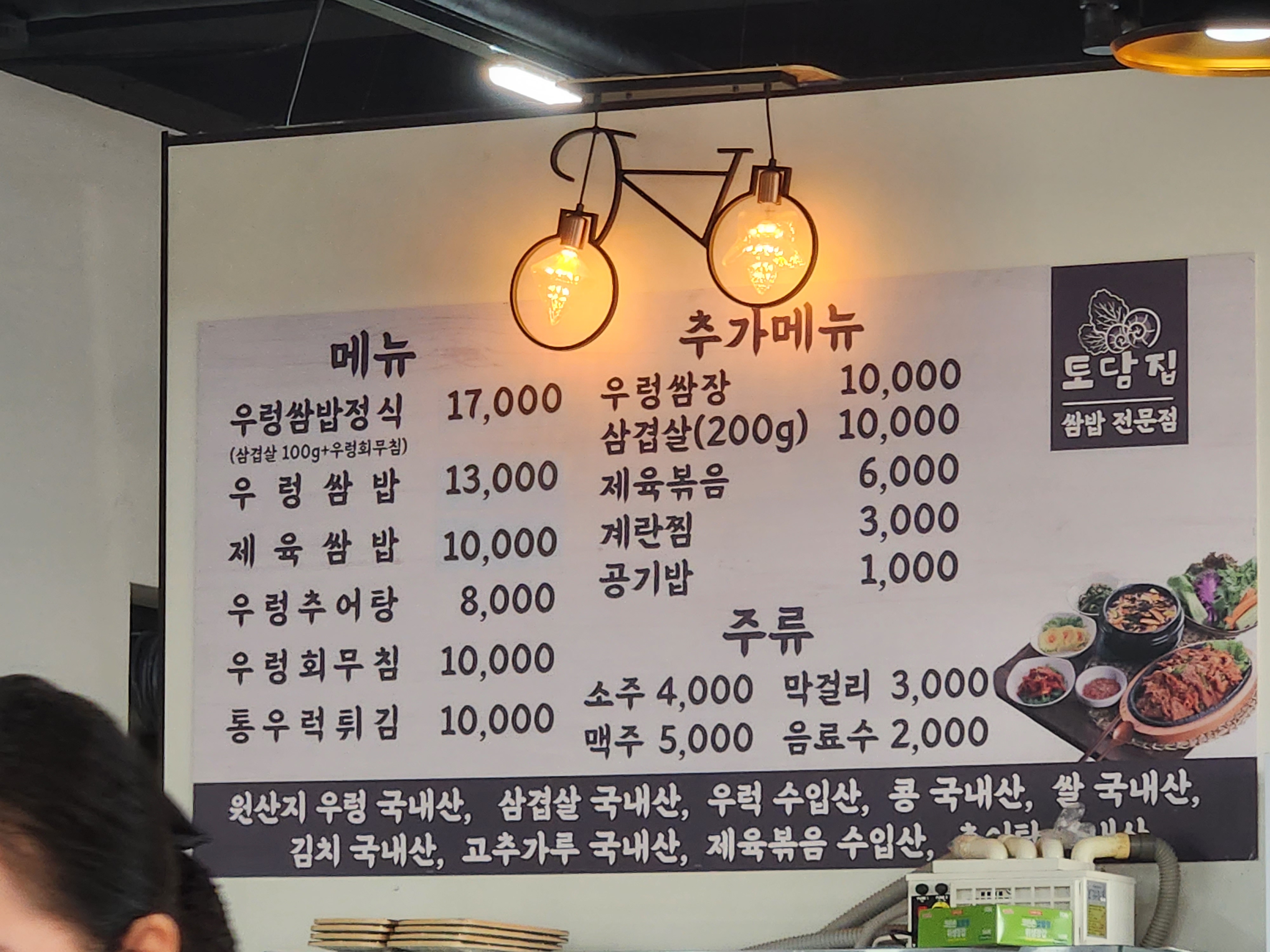저희는 삼겹살이 포함되지 않은 우렁쌈밥 2인으로 주문하였습니다. (1인에 13000원입니다.) 반찬이 정갈하고 딱 맛있게 먹을 수 있는 것만 나와서 좋았습니다. 된장찌개와 제육볶음 등은 칼칼하여 어린 아이가 먹기에는 조금 어려웠으니 계란찜이 있어서 잘 먹었습니다.